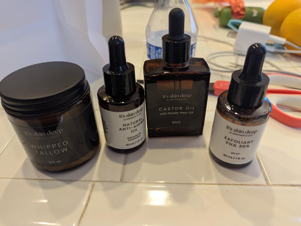 3. Apply tallow over the top of the Anti-Aging serum and any other serums you've applied.